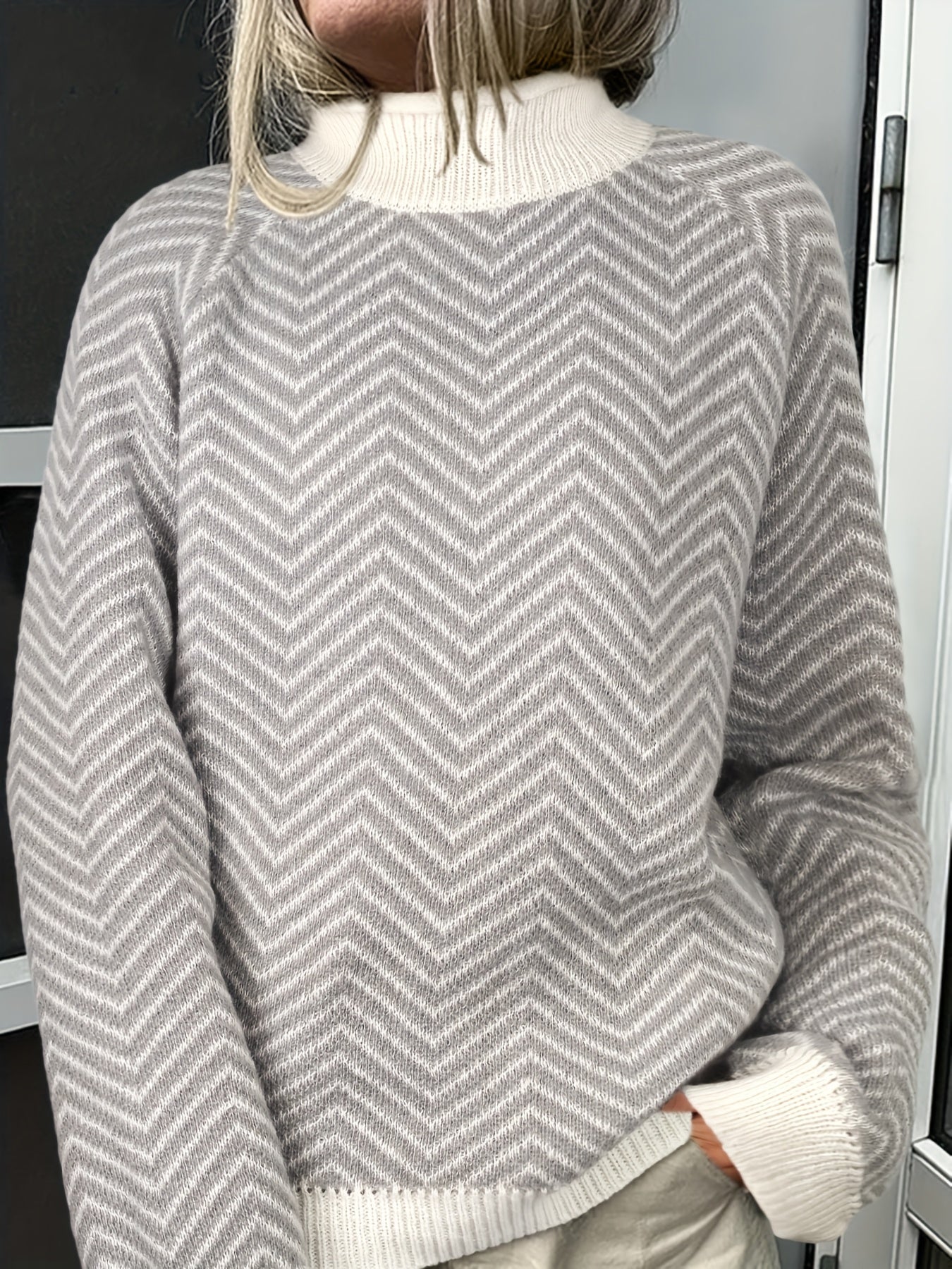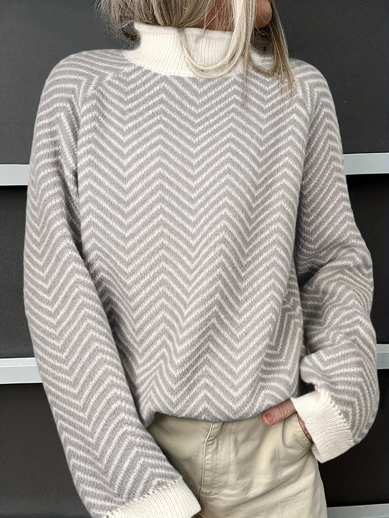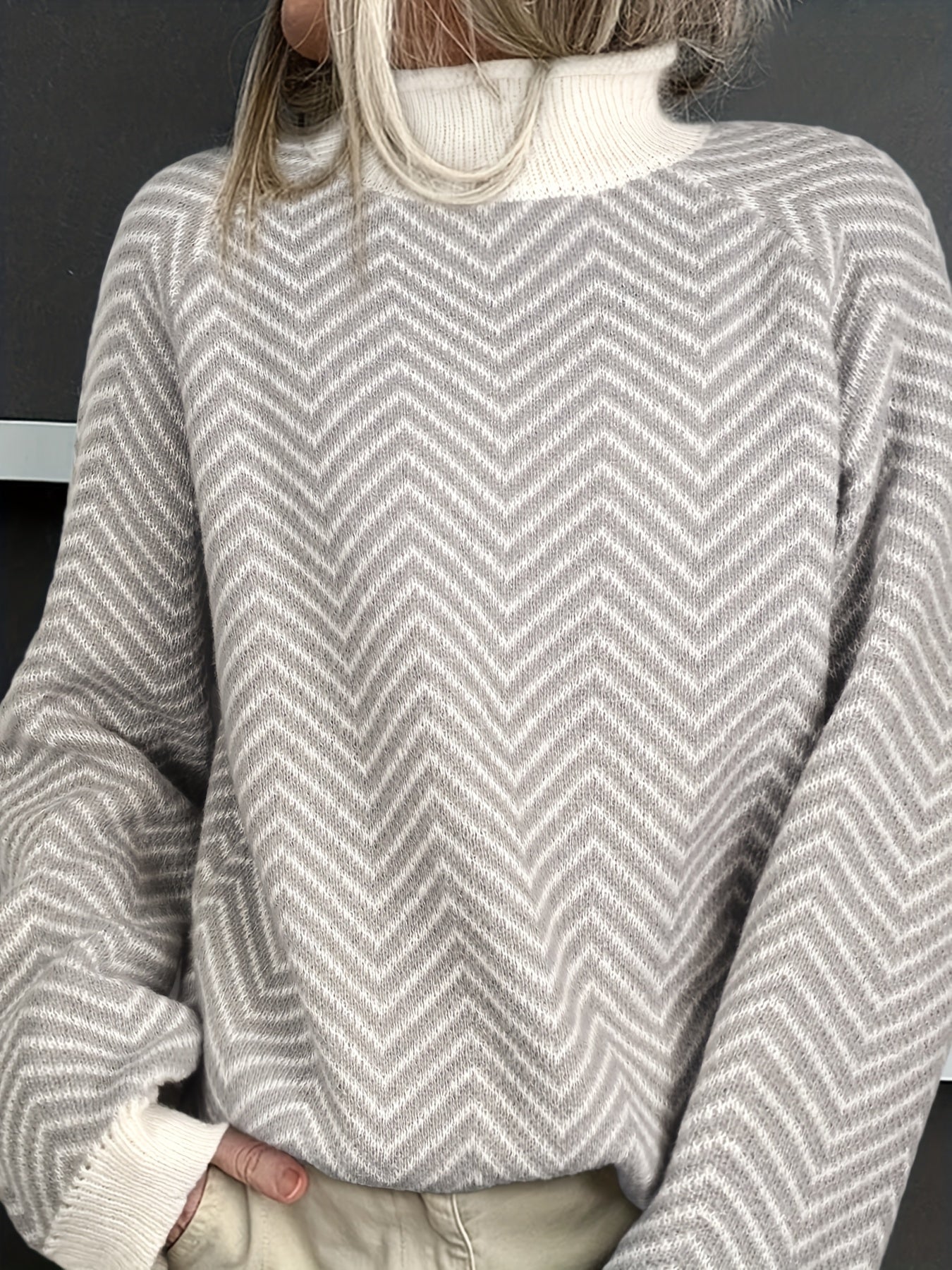 Synne-tröjan kombinerar en varm komfort med ett delikat och modernt uttryck. Den fina sicksack-strukturen och de kontrasterande muddarna ger en exklusiv känsla, medan den avslappnade passformen gör tröjan perfekt för både vardagsbruk och lugna helger. Ett mjukt och lätt plagg som känns behagligt mot huden – och som håller dig varm utan att kännas tung.